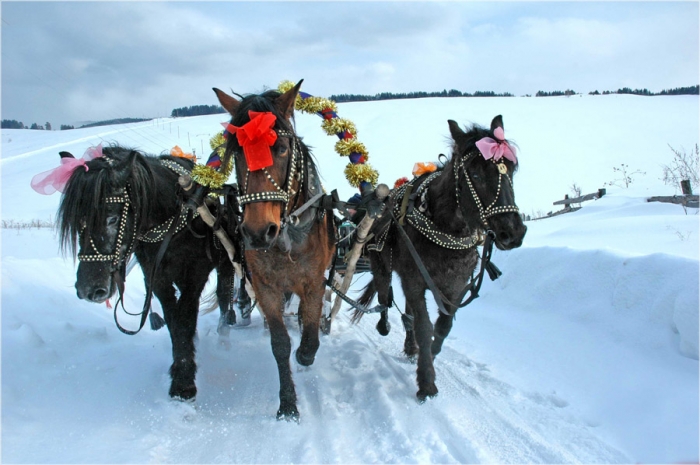После угощений прокатимся с ветерком на бричке (санях).