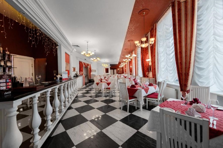 На территории отеля круглосуточная стойка регистрации, ресторан европейской и белорусской кухонь, пивной ресторан с широким ассортиментом разливного, бутылочного пива и фирменными закусками, финская сауна, конференц-зал, парковка, Wi-fi доступ в интернет, просторные номера в классическом стиле повышенной комфортности.