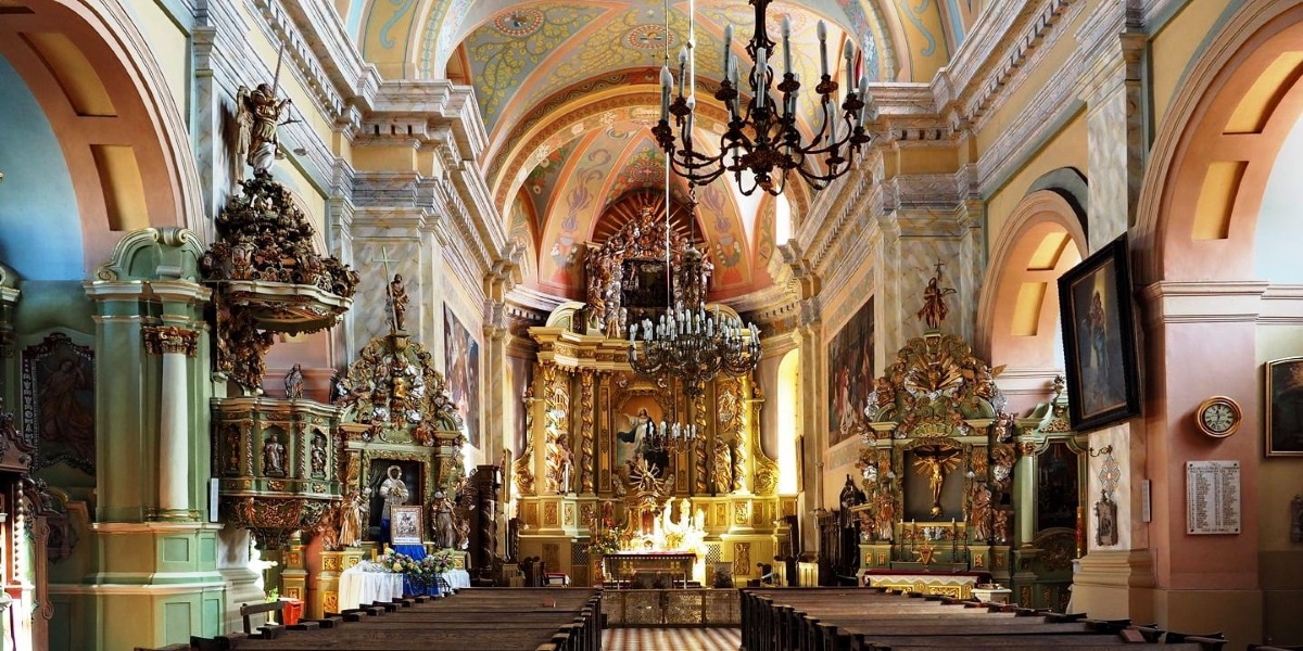 Наш маршрут также включает Дворец Бутримовичей, здания монастырей доминиканцев и кармелитов, а также ратушу. В предместье Каролин, где в начале XVIII века обосновались отцы-бернардинцы, мы увидим костел Михаила Архангела, который после восстания 1830-1831 годов был преобразован в Варваринскую церковь. Внутри храма сохранились уникальные росписи в технике гризайль.