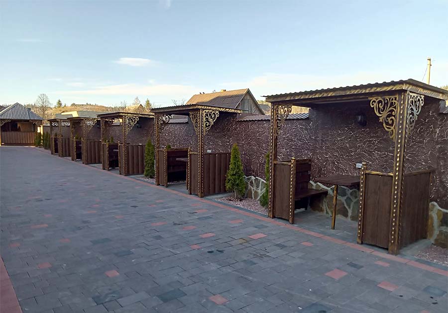 Состоит их нескольких коттеджей (основного одноэтажного, восьми двухэтажных, одного трехэтажного).