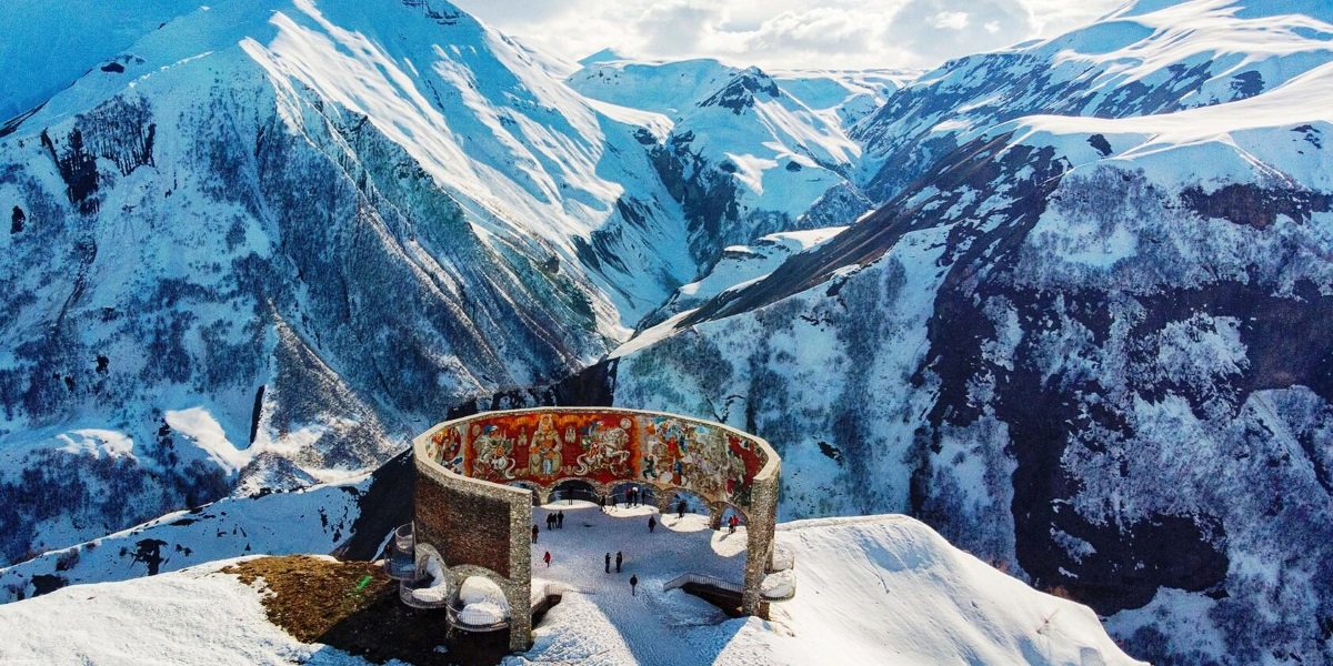 Наш путь лежит через знаменитый грузинский горнолыжный курорт Гудаури. Приготовьтесь к потрясающим видам заснеженных гор, которые просто завораживают !